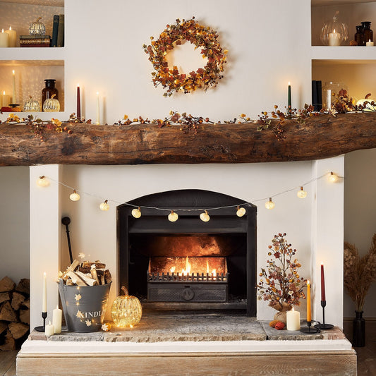 60cm Pre Lit Autumn & Christmas Wreath & Slim TruGlow® LED Candle Decoration