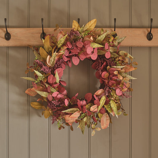 60cm Pre Lit Autumn & Christmas Wreath & TruGlow® LED Candle Bundle