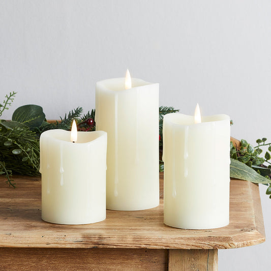 TruGlow® Heavy Dripping Wax LED Pillar Candle Trio