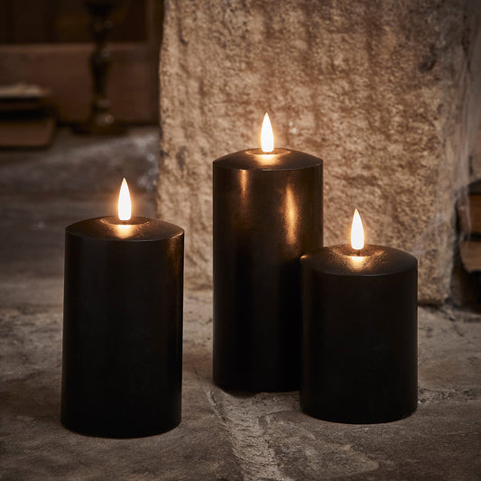 TruGlow® Dark Grey Distressed LED Pillar Candle Trio