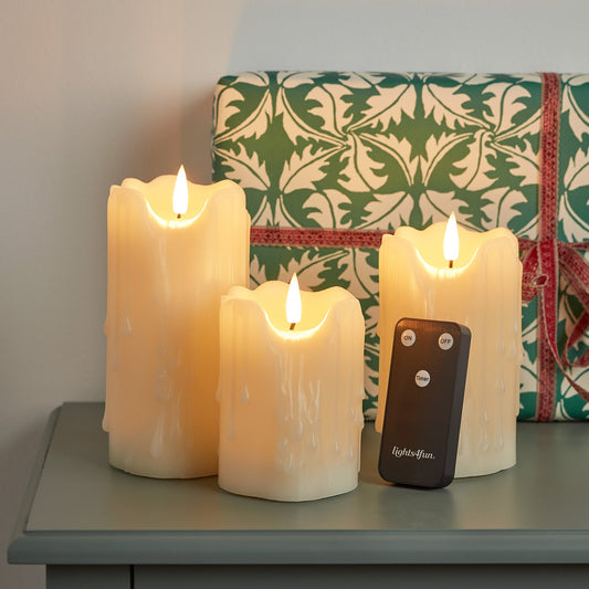 TruGlow® Dripping Wax LED Pillar Candle Trio